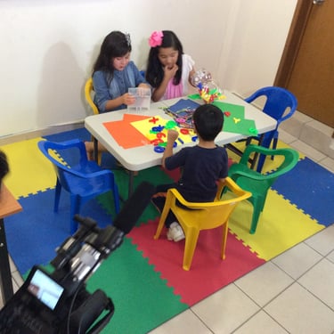 Collaborative learning experiences in a group setting, fostering interactive language practice and collective growth.